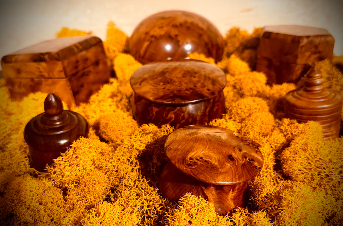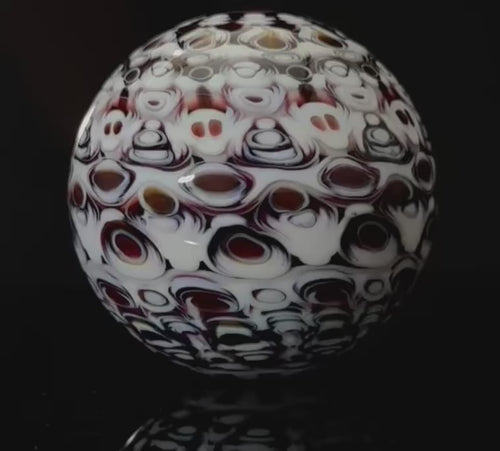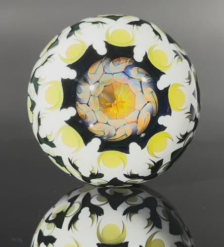 Each marble comes in a hand-burned Moroccan burl wood box, signed by me (and any collaborating artist). The box is more than packaging—it’s an altar, solid and beautiful on its own. A stand for your orb (wood or plastic) is included, along with a wild card mix of stickers and magnets including 10+ unique designs - a playful stash of contraband for a true marble propagandist.
